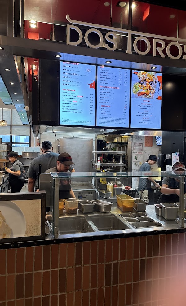 Dos Toros Taqueria at Brookfield Place is a Mexican-inspired restaurant known for its tacos, burritos, and fresh-made ingredients. They offer slow-cooked meats, house-made salsas, and customizable meals with bold, authentic flavors.
